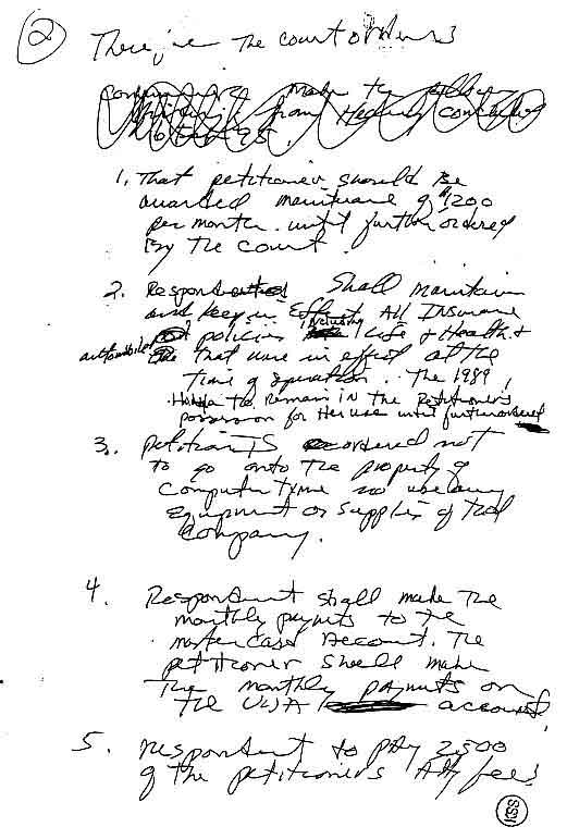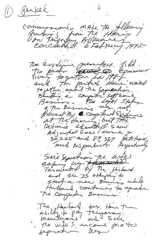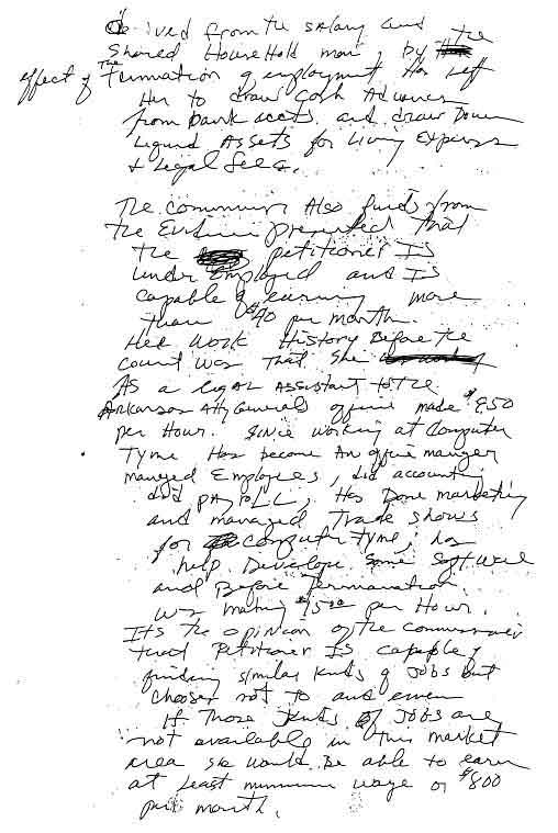 Based on Commissioner Davis' record of letting the litigant's attorneys write decisions for him, and the decision being so favorable to my ex-wife's position, and the inclusion of findings that were not the subject of the hearing, I believe that either William Wear and/or James Sharp wrote the "order" of the court.